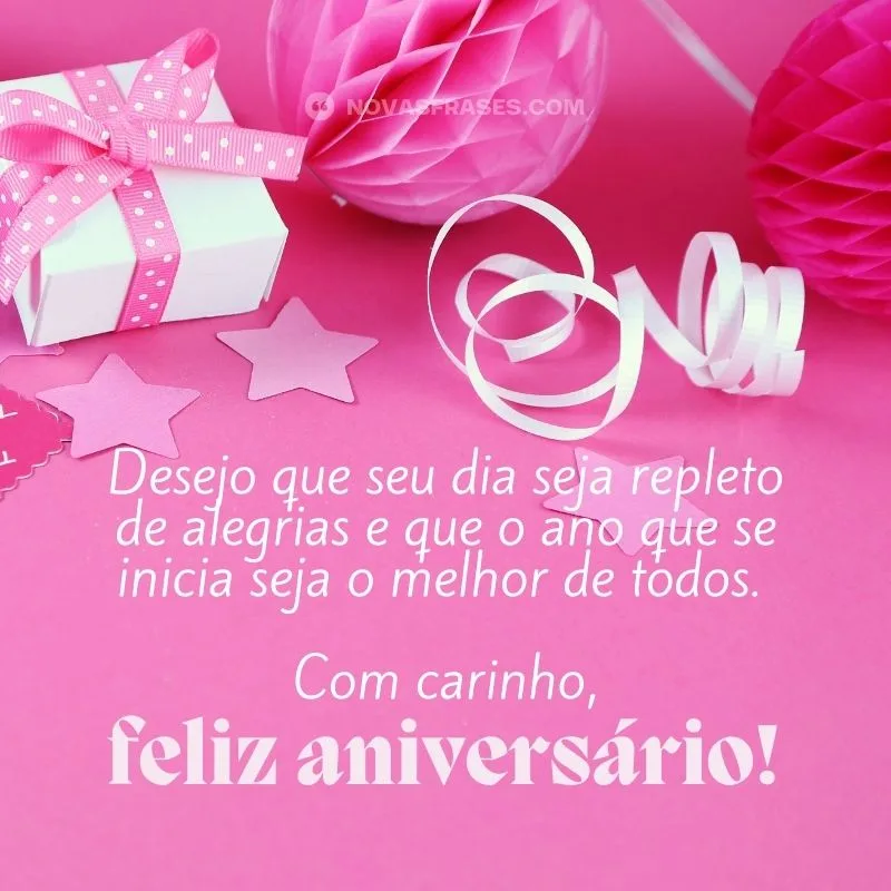 Feliz aniversário! Que o carinho das pessoas queridas te envolva e renove suas forças para viver dias ainda mais lindos. 💖