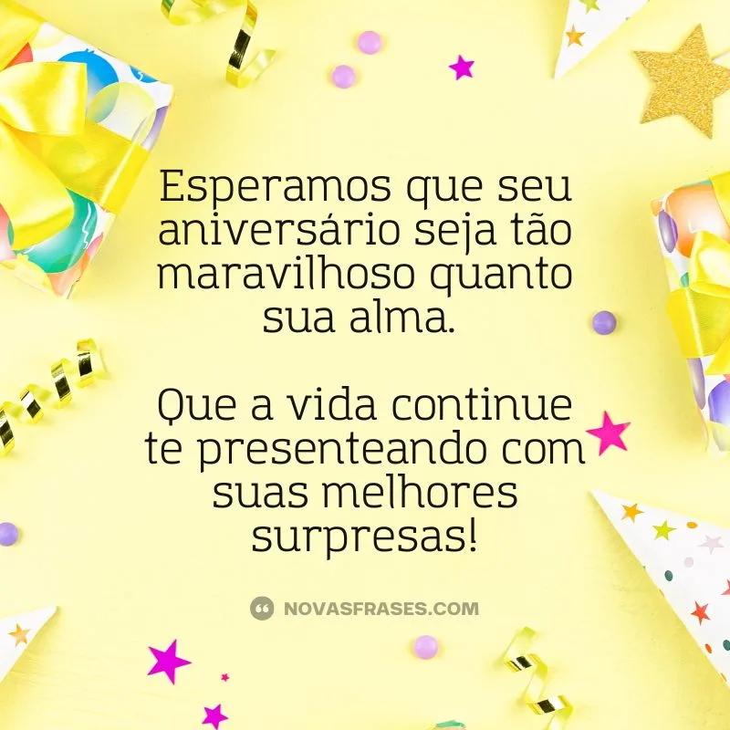 Esperamos que seu aniversário seja tão maravilhoso quanto sua alma. Que a vida continue te presenteando com suas melhores surpresas! 💐