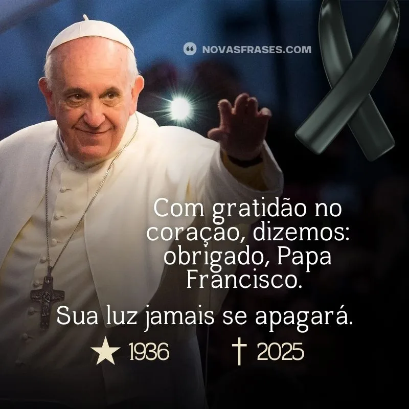 O mundo se despede com pesar de um líder que marcou gerações com fé, humildade e compaixão. O luto por Papa Francisco é um momento de reflexão e oração. Aqui você encontra frases com imagens para expressar gratidão, prestar homenagens e manter viva sua luz e seu legado de paz.